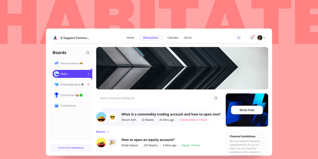Habitate provides you a discussion forum, a community calendar for all your events, and a C Drive to create folders, upload files, and share with your members. All of it, happening on your website.