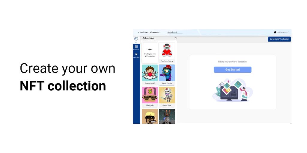 Appy Pie NFT Generator lets you create 1000s of customized and unique NFTs in a few minutes, with its intuitive user interface. Upload your own designs or make the most of in-built templates to genera