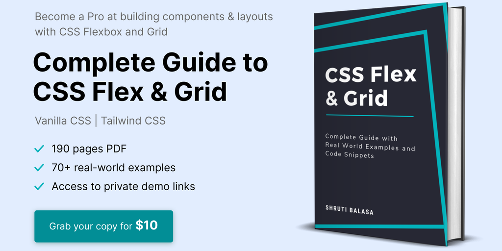 👉 190 pages eBook 👉 Curated list of 70+ real world use cases & examples 👉 Access to Private CodePen links with working demos. The book follows a "Problem Based Learning" approach where you are first p