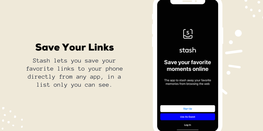 Stash is an extension that lets you save your favorite links to your phone directly from any app, in a list only you can see. Keep track of pictures, videos, links you find or items you want.