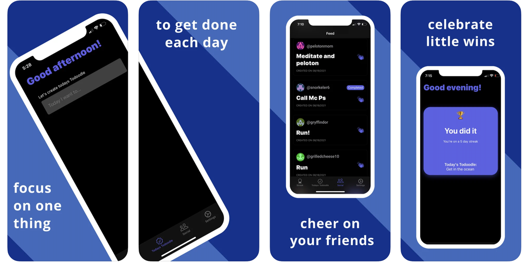 Todoodle takes a different approach to productivity: less is more. No more calendars, color coding, or long lists. Just pick one thing to do each day, cheer on your friends, and celebrate the small wins. That's it.