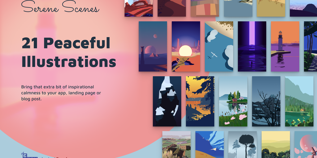 A set of 21 eye-catching landscape illustrations perfect for your next... 🎴 Landing page 🚀 Social media marketing campaign 📱 App screens 📩 Newsletters & Blog posts With a FREE attribution license or a