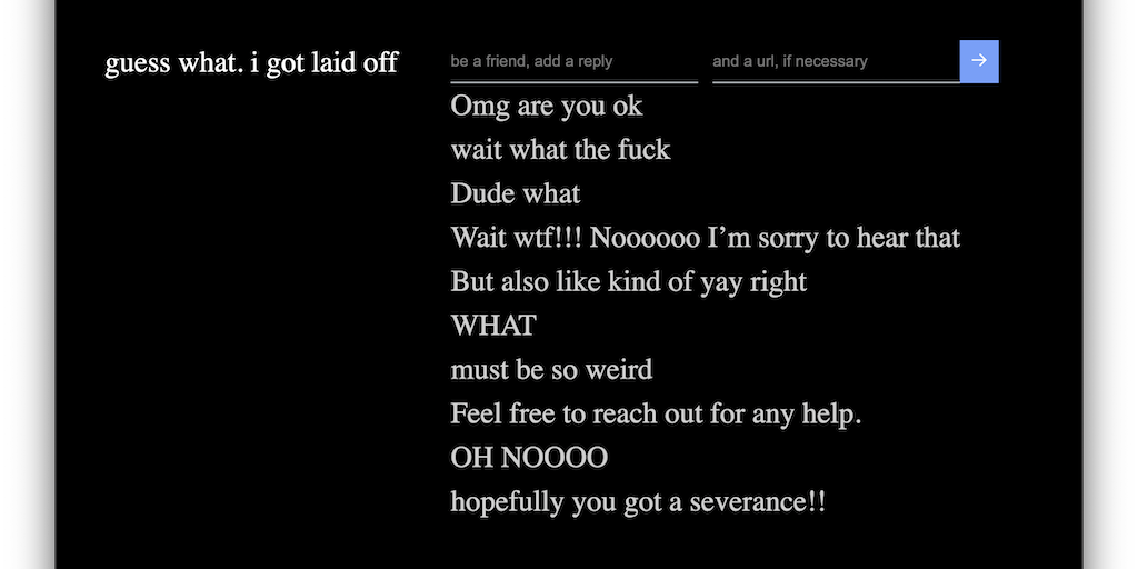 Laid off club is a record of feelings that have captured thousands in the tech industry these past few months. People in all states of employment have contributed kind and relatable words. Take a look