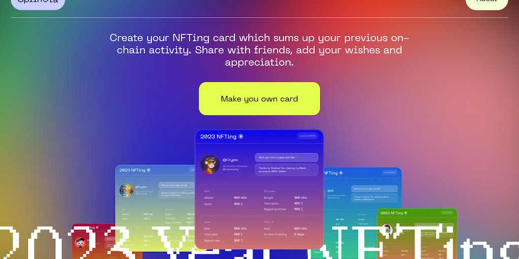 We believe that the start of the year is the time to kickstart it by sharing good words, and evaluate what has been done. We allow NFT collectors to generate a card and see the NFT-related on-chain da