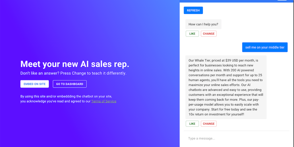 An AI chatbot for your website that feels like a human sales rep or customer support agent. The new AI revolution is changing the way we work & now it's possible to run 24/7 live chat with zero wait t