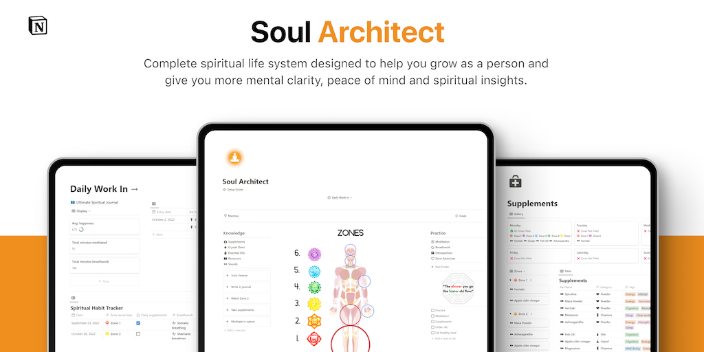 Soul Architect is an unparalleled spiritual life system designed to help you grow as a person and give you more mental clarity, peace of mind and spiritual insights.