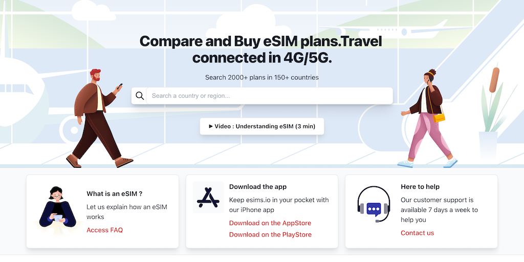 Make the most of your eSIM compatible device when you travel : esims.io aggregates 4000+ data plans in 200+ countries and helps you compare them