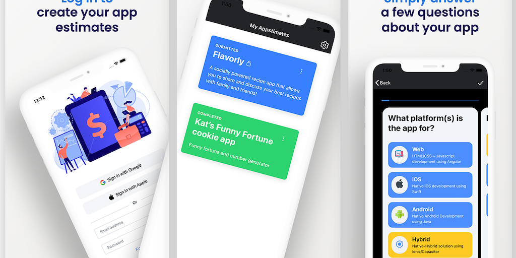 Appstimator is a mobile app that helps you estimate the cost of developing your own app. Select your app's features and Appstimator will provide a detailed cost estimate, taking into account the compl