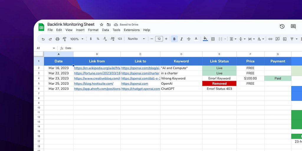 Introducing the "Backlink Monitoring Tool" - an advanced Google Sheets-based tool designed to monitor and manage your backlinks with ease and precision.