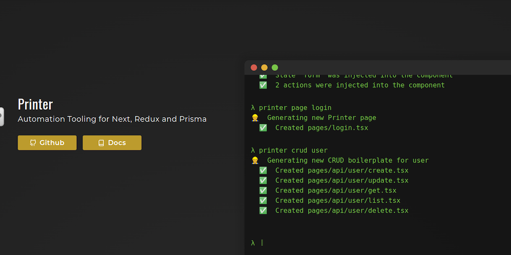 Printer - Automation Tooling for Next, Redux and Prisma | Product Hunt