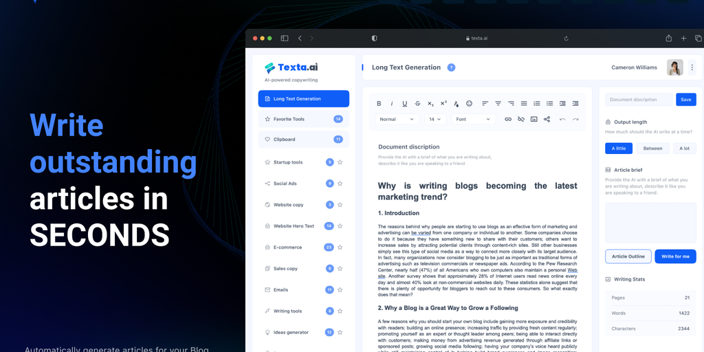 Texta Pro Article Writer - Write outstanding articles in seconds | Product Hunt