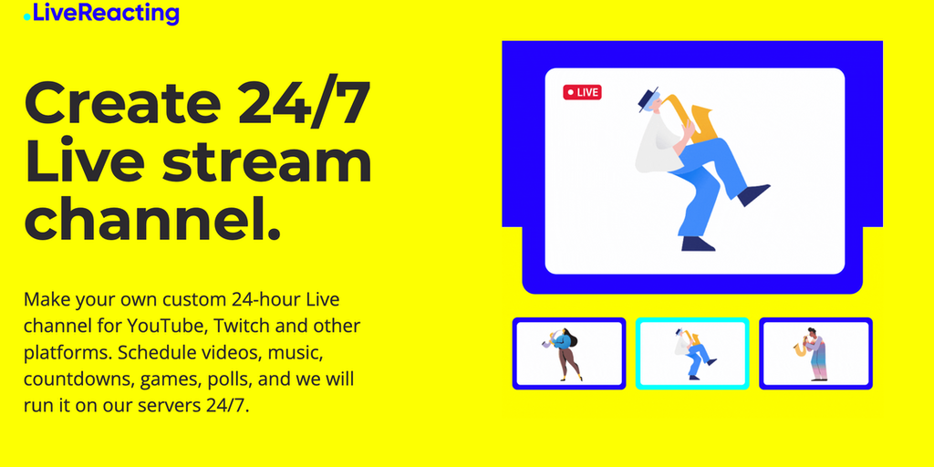 LiveReacting 24/7 - Create your own 24/7 Live stream channel | Product Hunt