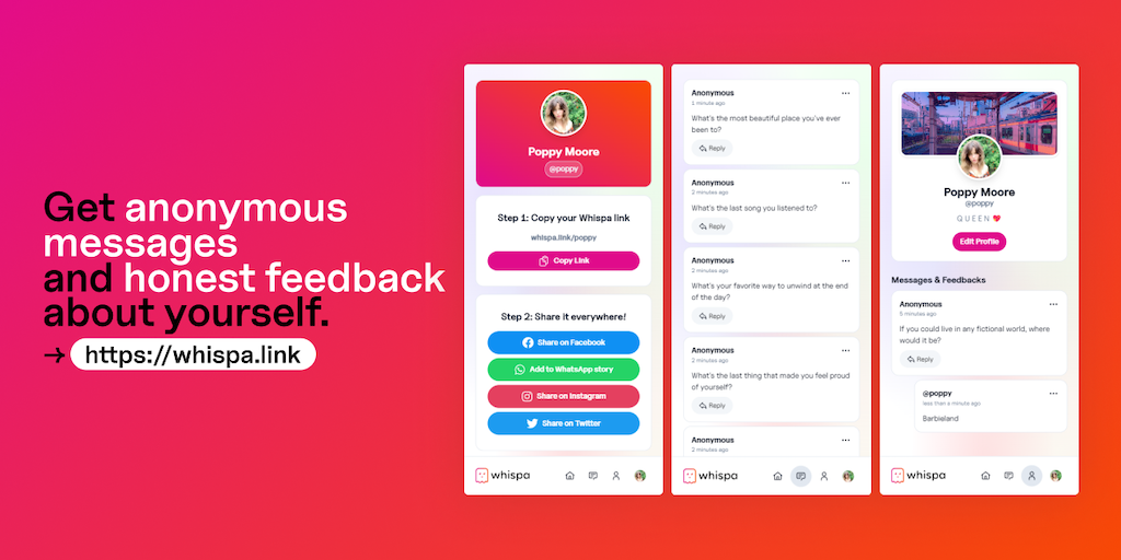 Whispa - Get anonymous messages and honest feedback about yourself | Product Hunt