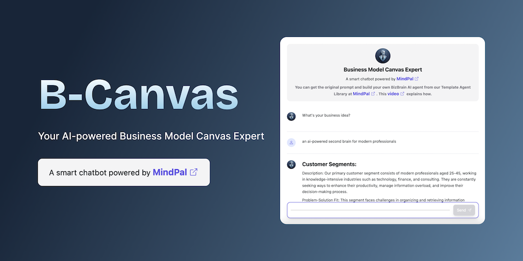 B-Canvas is your hassle-free solution for creating a comprehensive Business Model Canvas. Share about your business, and within seconds, receive a detailed and well-organized business model, simplifyi
