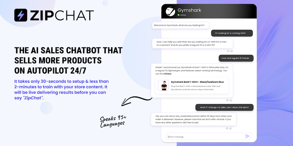 Zipchat AI - AI-Powered Ecom Sales & Support. Zero Human Effort | Product Hunt