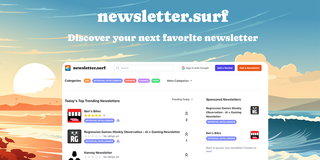 newsletter.surf - Discover your next favorite newsletter | Product Hunt
