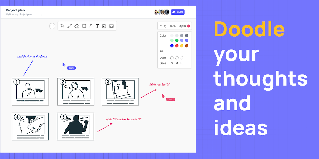 Tixio Whiteboard is a collaborative whiteboard. It's an infinite drawing canvas with a simple, colorful, and enjoyable user interface. It gives you dynamic visuals that allow pieces to be changed in r