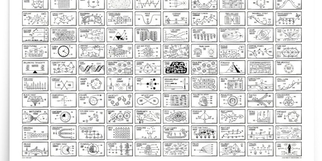 Visual frameworks are sketches and diagrams of mental models, like building blocks for thinking. You can combine and configure them in different ways to make sense of challenging situations, think cre