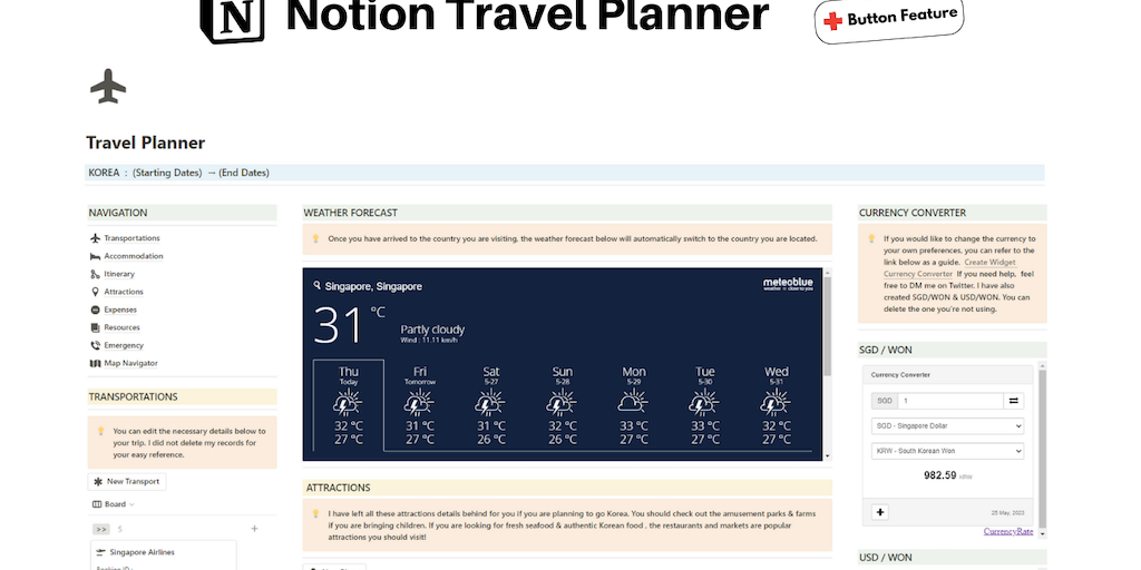 With Notion Travel Planner, you can say goodbye to the stress of organizing your trip and embrace the excitement of exploring new places.