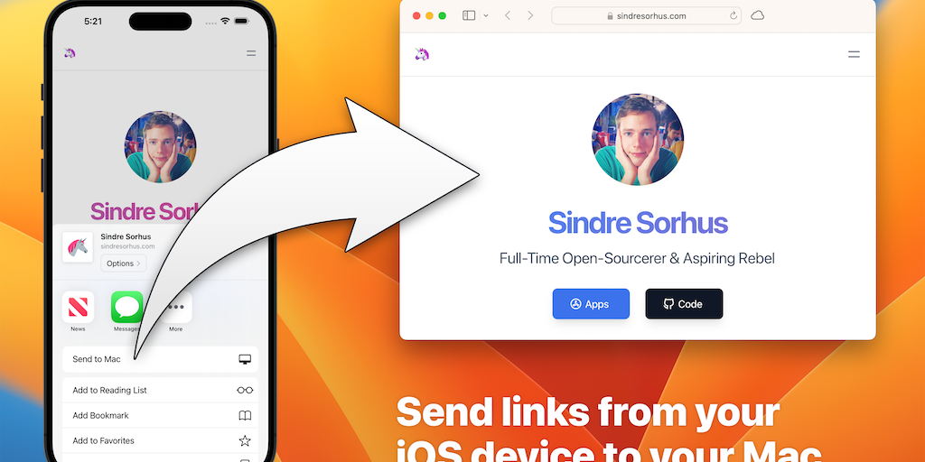 Quickly send a link from your iOS device to your Mac. For example, share a link from Safari on your iPhone or iPad and have it open in the default browser on your Mac. You can also use it to run short