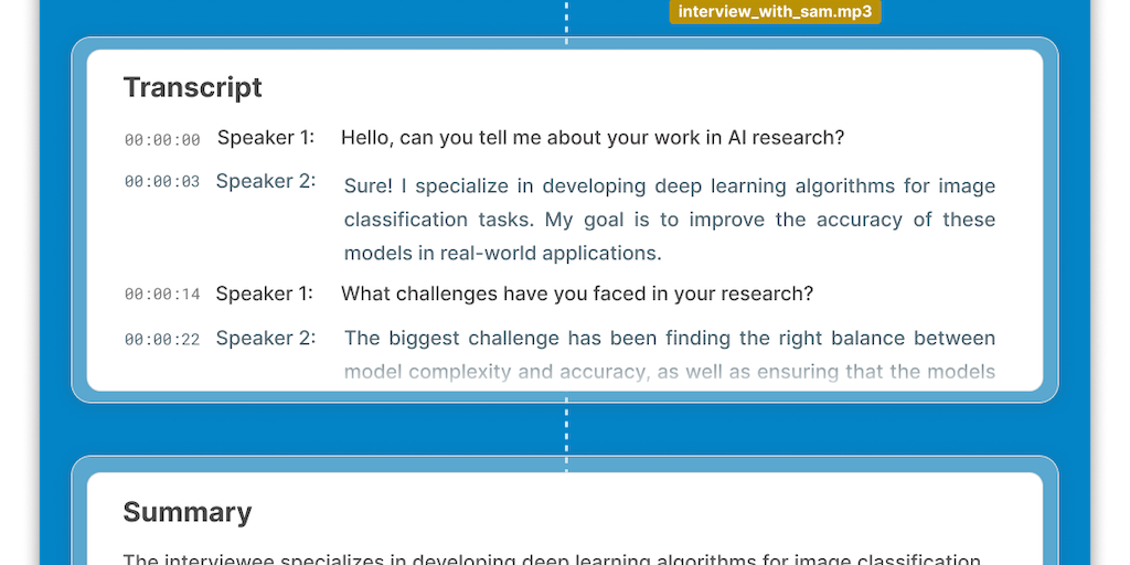 Meet Audiogest — AI-powered transcription at your fingertips. Enjoy 40 mins free on signup, speaker diarization using Whisper and Pyannote, and GPT-4 for summaries. No subscription, just pre-paid cred