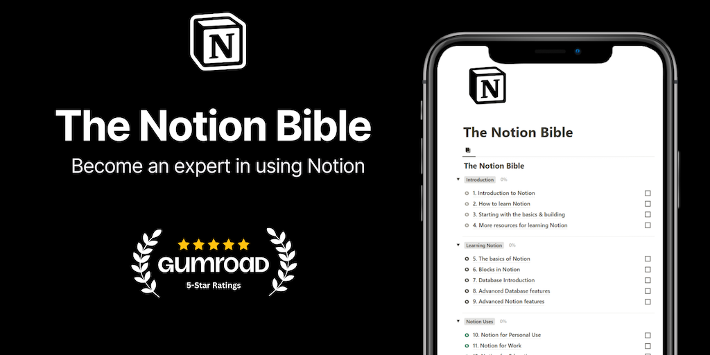 An in-depth guide that will teach you the basics and the advanced features of Notion through step-by-step tutorials with explanations and examples. Available in Notion format for an interactive learni