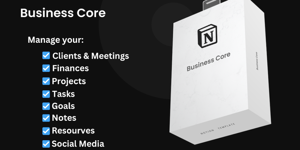 Take your business to the next level with Business Core, the all-in-one Notion template that helps you manage clients, projects, tasks, finances, and more with ease