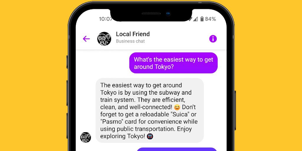 👋 Meet Local Friend, your AI chatbot guide for exploring new cities! Get personalized recommendations, discover hidden gems, find the best local food and more. Available 24/7 on Messenger, Local Frien