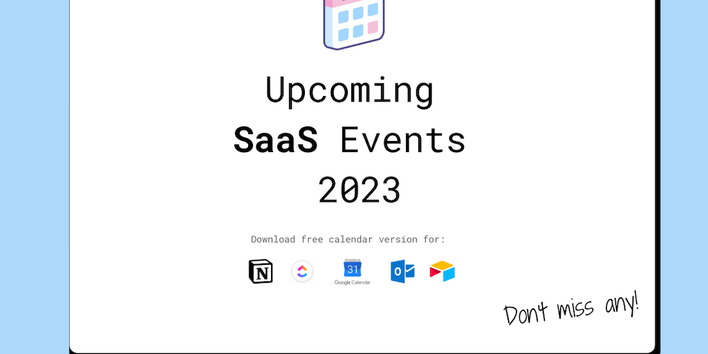Download SaaS Events 2023 for: → Google Calendar → Microsoft Outlook → Airtable → Notion → Clickup