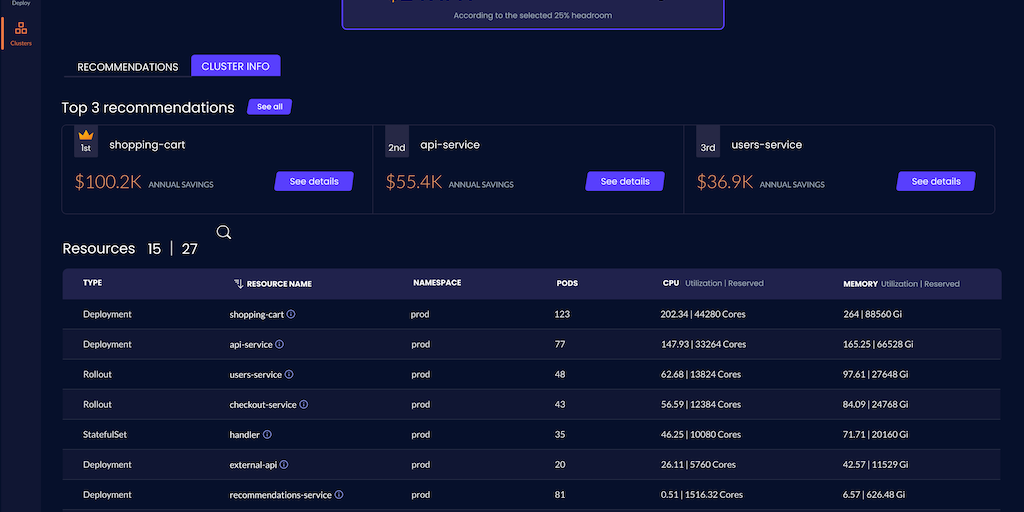 gMaestro is a continuous workload and pod rightsizing tool for Kubernetes cost optimization. The free tool provides DevOps, SREs and FinOps full visibility into K8s clusters, to eliminate over-provisi