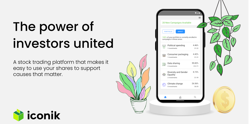 Use your stock to support causes that matter. Invest any amount ($0 commission) while joining other shareholders combining their voting power to have a say. “Using iconik, small shareholders could [ha