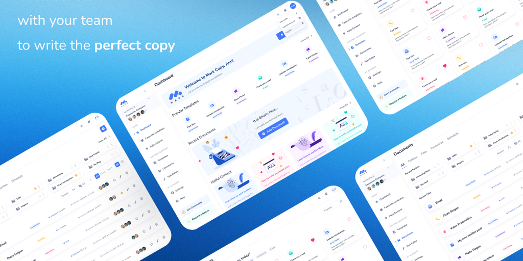 Write content 3x faster with Mark ✍️ Collaborate with your team to write all your marketing content. Save minutes on writing your next LinkedIn posts, save hours on writing blog posts. Using GPT-3 lat