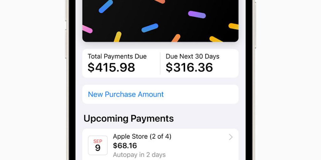 pple today introduced Apple Pay Later in the U.S. Designed with users’ financial health in mind, Apple Pay Later1 allows users to split purchases into four payments, spread over six weeks with no inte