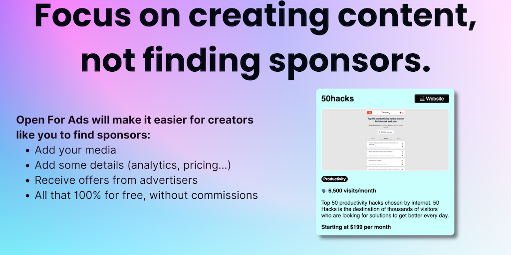 Open For Ads - The platform to connect independent medias and advertisers | Product Hunt