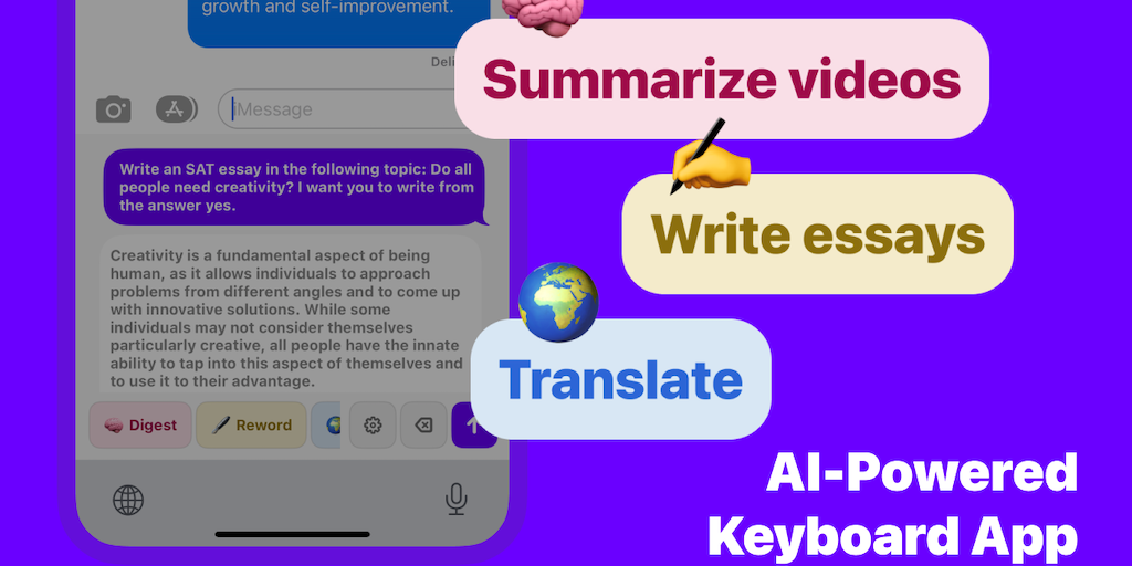 Smarty is the ultimate AI-powered iOS keyboard that helps draft messages, suggests words, and summarizes any article, website or YouTube video. It also translates messages into your preferred language