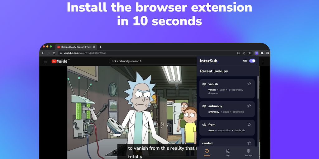 Learn new words easily while watching videos with InterSub. Instant translation and auto-saving of viewed words to your personal vocabulary make improving your language comprehension effortless. Use i