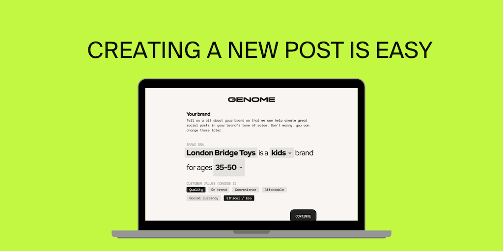 Genome leverages AI to help makers, sellers and creators to elevate their brand on Instagram. Starting from your brand attributes, you can generate posts with custom captions in your brand's tone of v