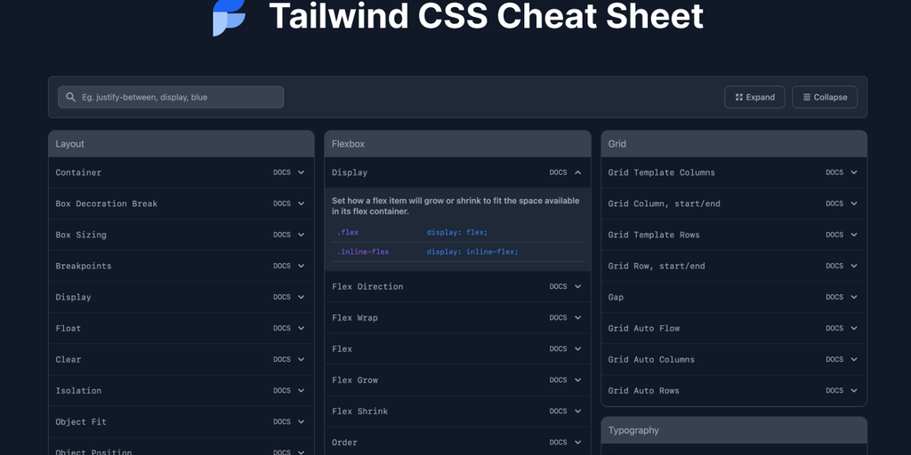 Tailwind CSS Cheat Sheet - Every class name from Tailwind CSS on a single page | Product Hunt