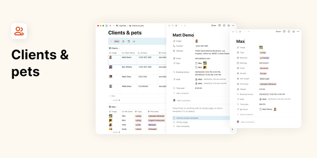 Notion Pet Grooming Appointment - Easy manage your booking, clients, revenue, pets and more | Product Hunt