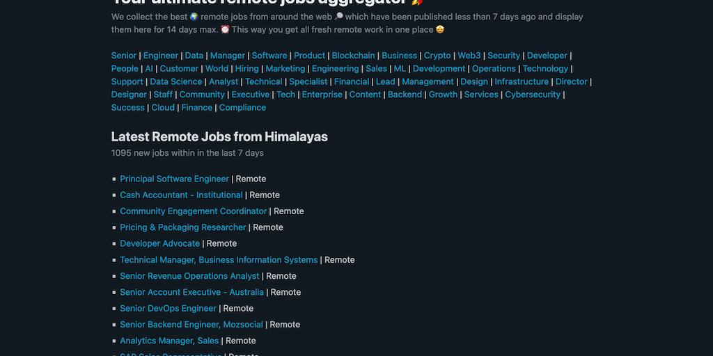 We collect the best 🌍 remote jobs from around the web 🔎 which have been published less than 7 days ago and display them here for 14 days max. ⏰ This way you get all fresh remote work in one place 🤩