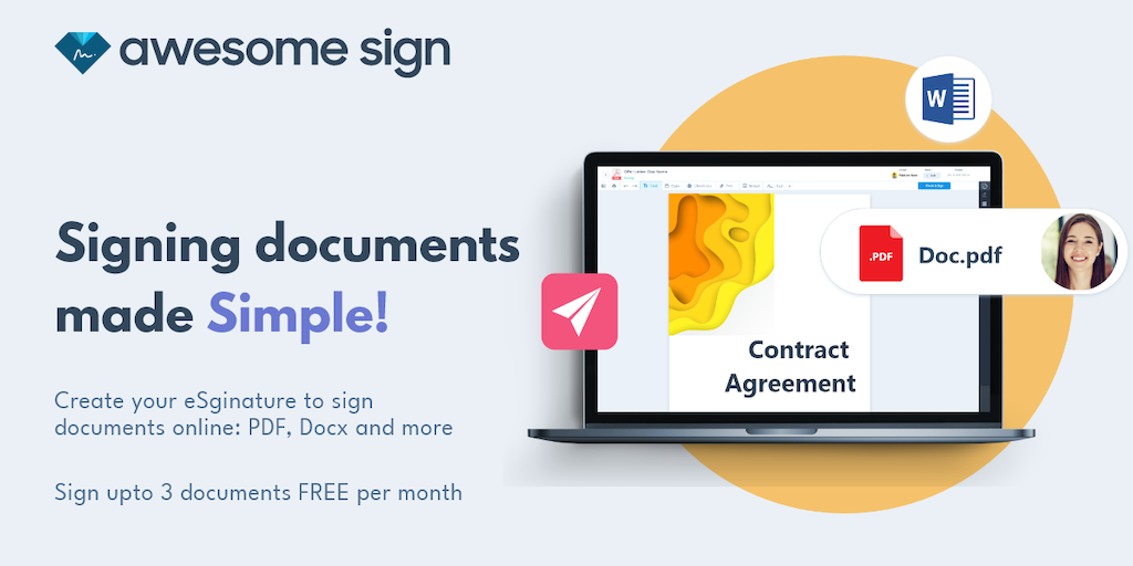 Awesome Sign is a simple to use e-signature tool for you to sign, assign and manage documents online. We make it easier to to get a signature by eliminating time wasted emailing signers, printing copi