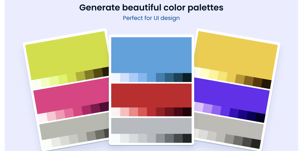 Goodpalette is a color palette generator specifically built for UI design. It will give you primary, accent, and neutral colors, each with a comprehensive set of shades for text, backgrounds, buttons,