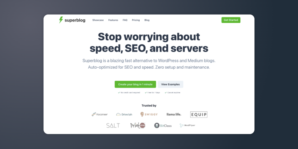 Superblog is a blazing-fast alternative to WordPress and Medium blogs. Your blog is auto-optimized for SEO, conversions, & speed so that you can focus on writing content. Best thing? You can connect “