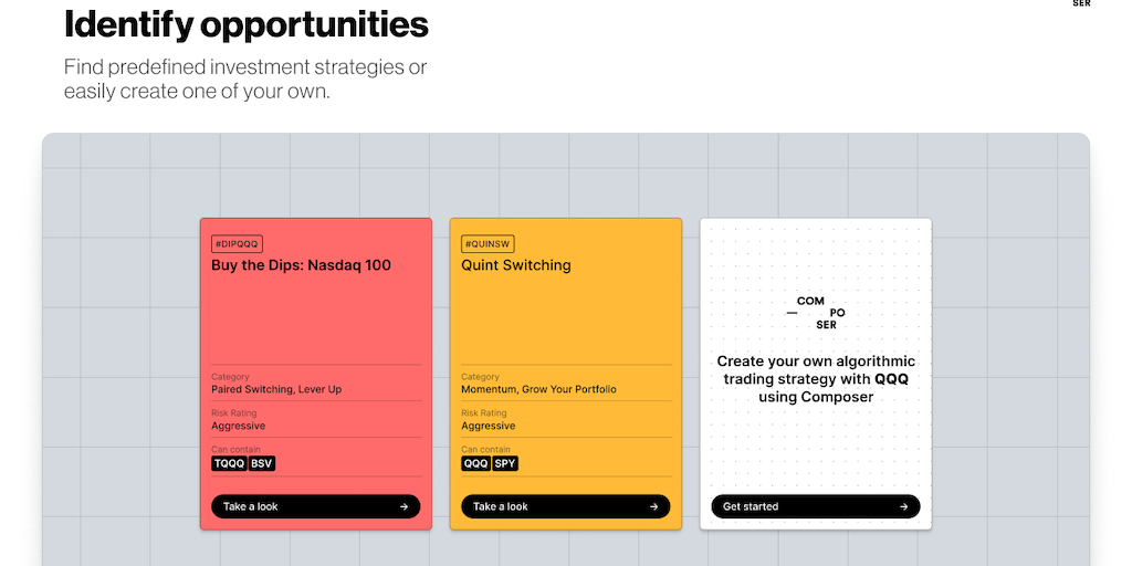 Get access to information on popular ETFs, including performance data, top holdings, correlated ETFs, and pre-built automated trading strategies. Backtest, build, and share your strategies in record t