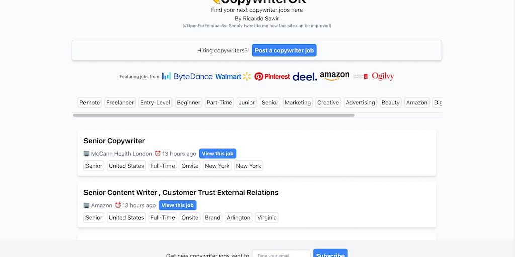 CopywriterOK - Land Your Dream Copywriting jobs! | Product Hunt