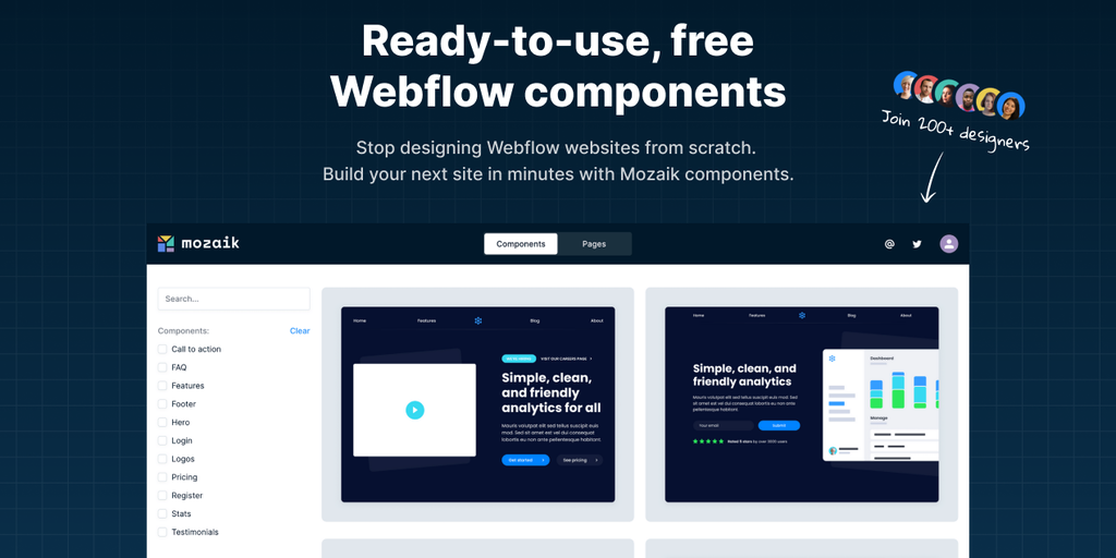 Mozaik - A library of ready-to-use, free Webflow components | Product Hunt