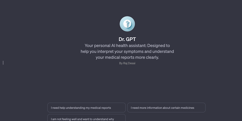 Dr. GPT is a specialized AI assistant designed to help users understand and interpret their health concerns and medical reports. It simplifies complex medical language into easily understandable terms