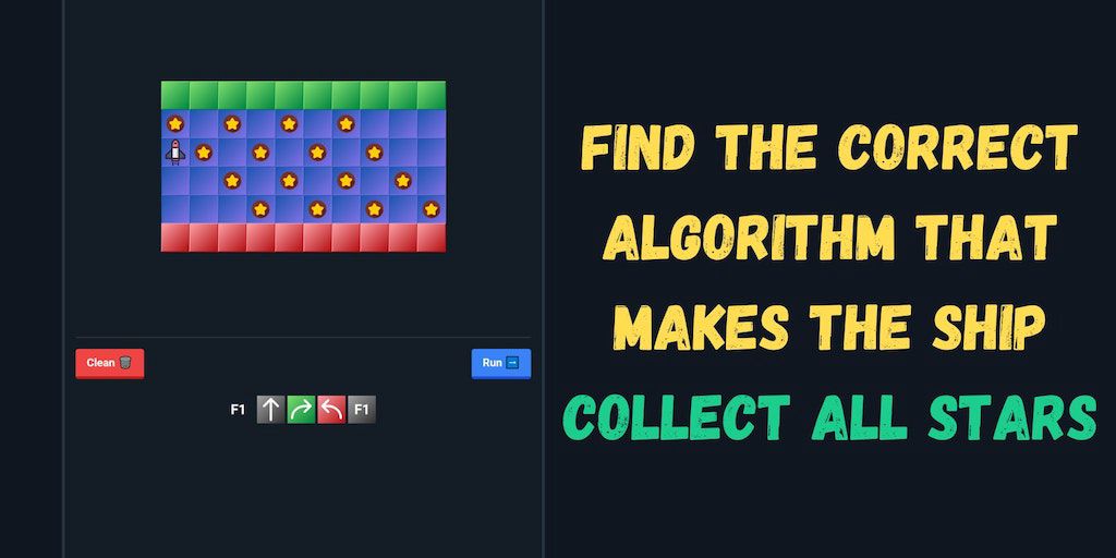 Find the correct algorithm that makes the ship collect all stars. Challenge yourself with more than 50 puzzles. Will you be able to reach the final level?