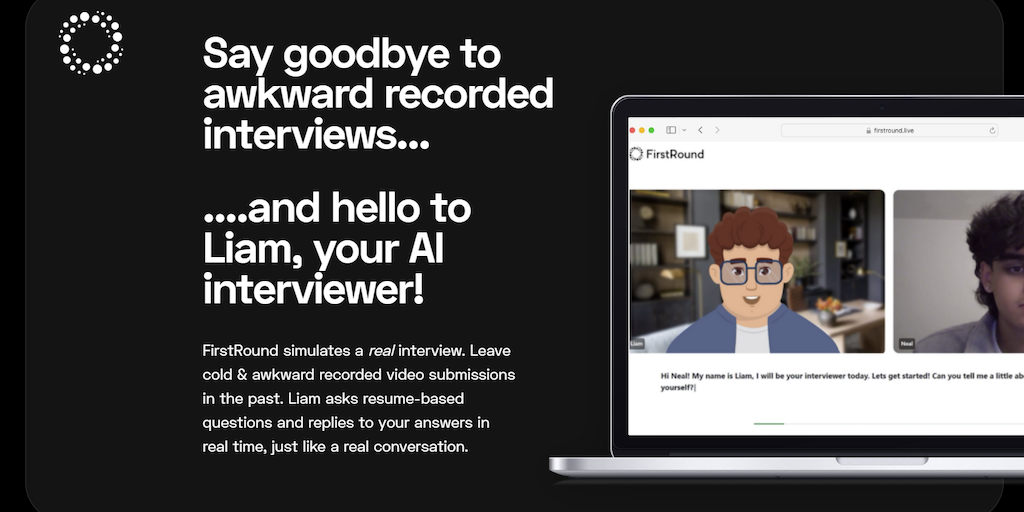FirstRound is an AI-powered interview platform that personalizes one-way video interviews. Liam, your AI interviewer, asks resume-based questions and follows up on your responses, providing a better i