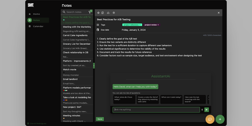Personal AI assistant to handle note taking and events scheduling seamlessly with an chat interface that helps you not to lose track of anything!